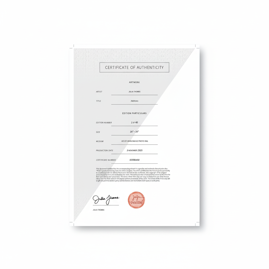 20"x20" / 50x50cm, fine art print, edition of 20 - Presented on acid-free, archival Photorag Giclée paper from Hahnemühle